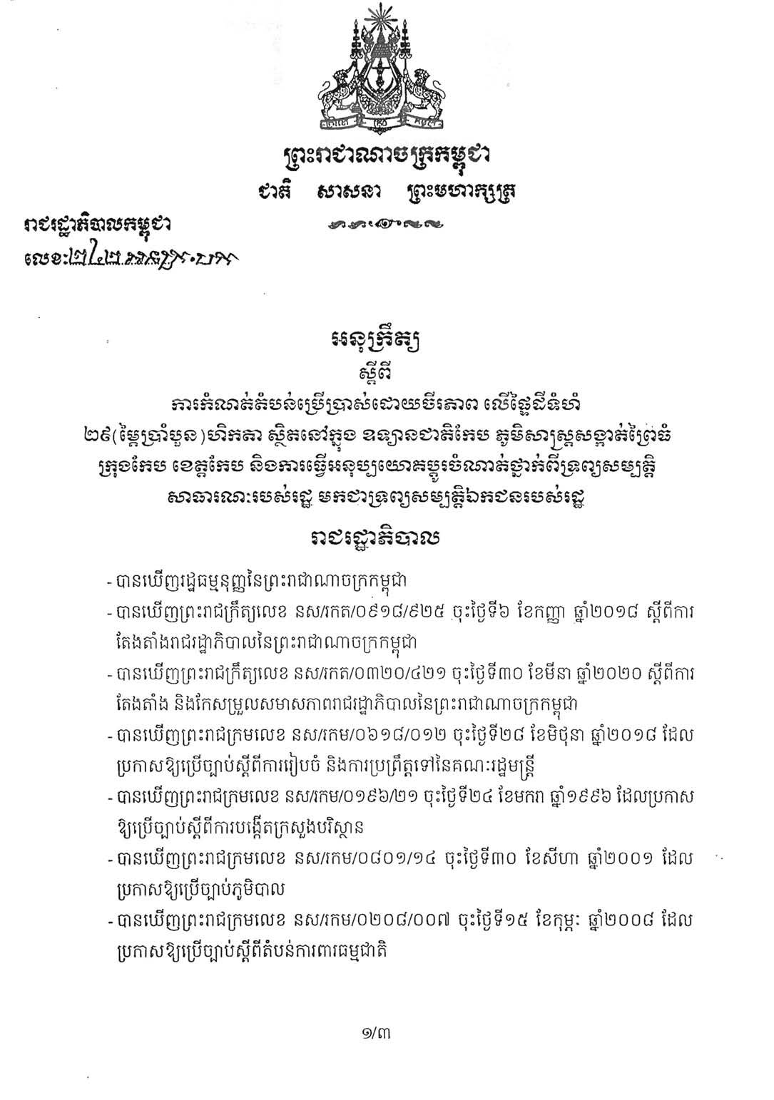 - ប្រភេទឯកសារៈ អនុក្រឹត្យ