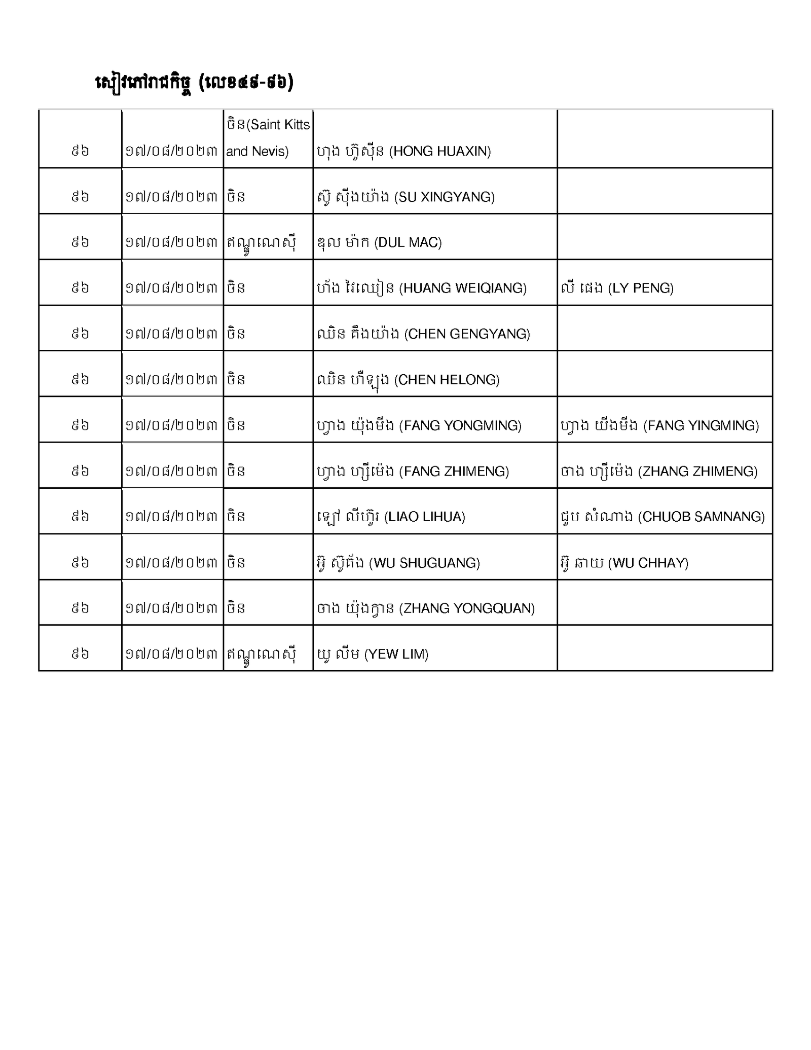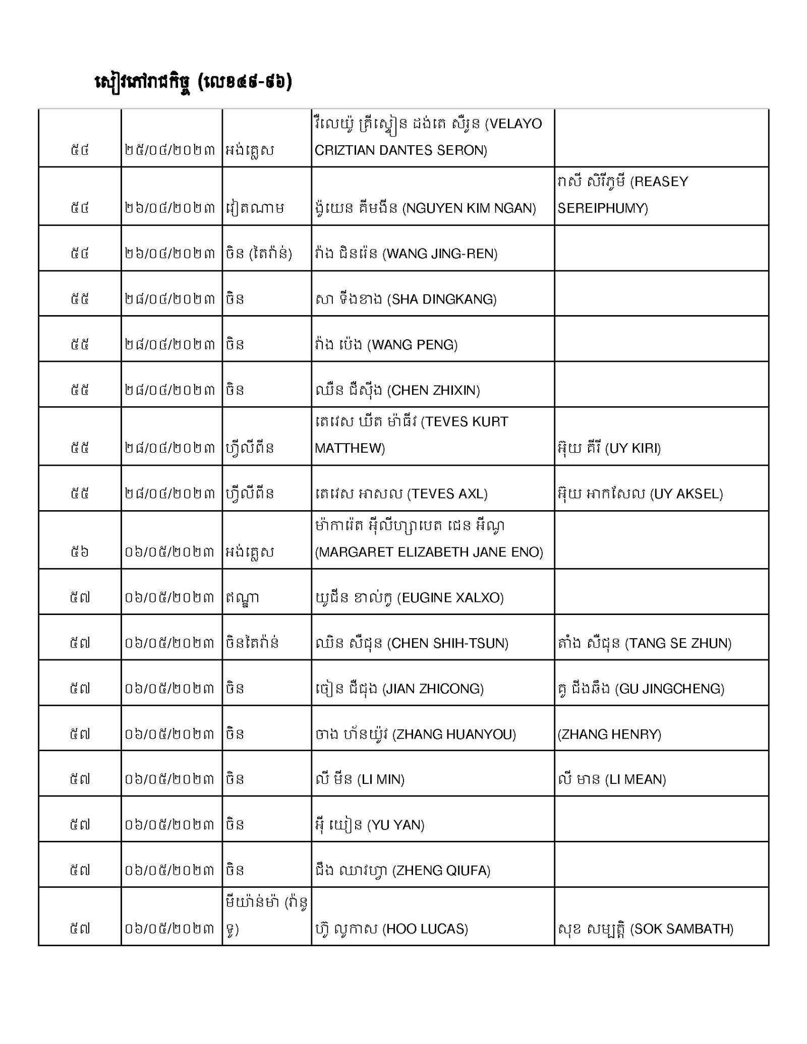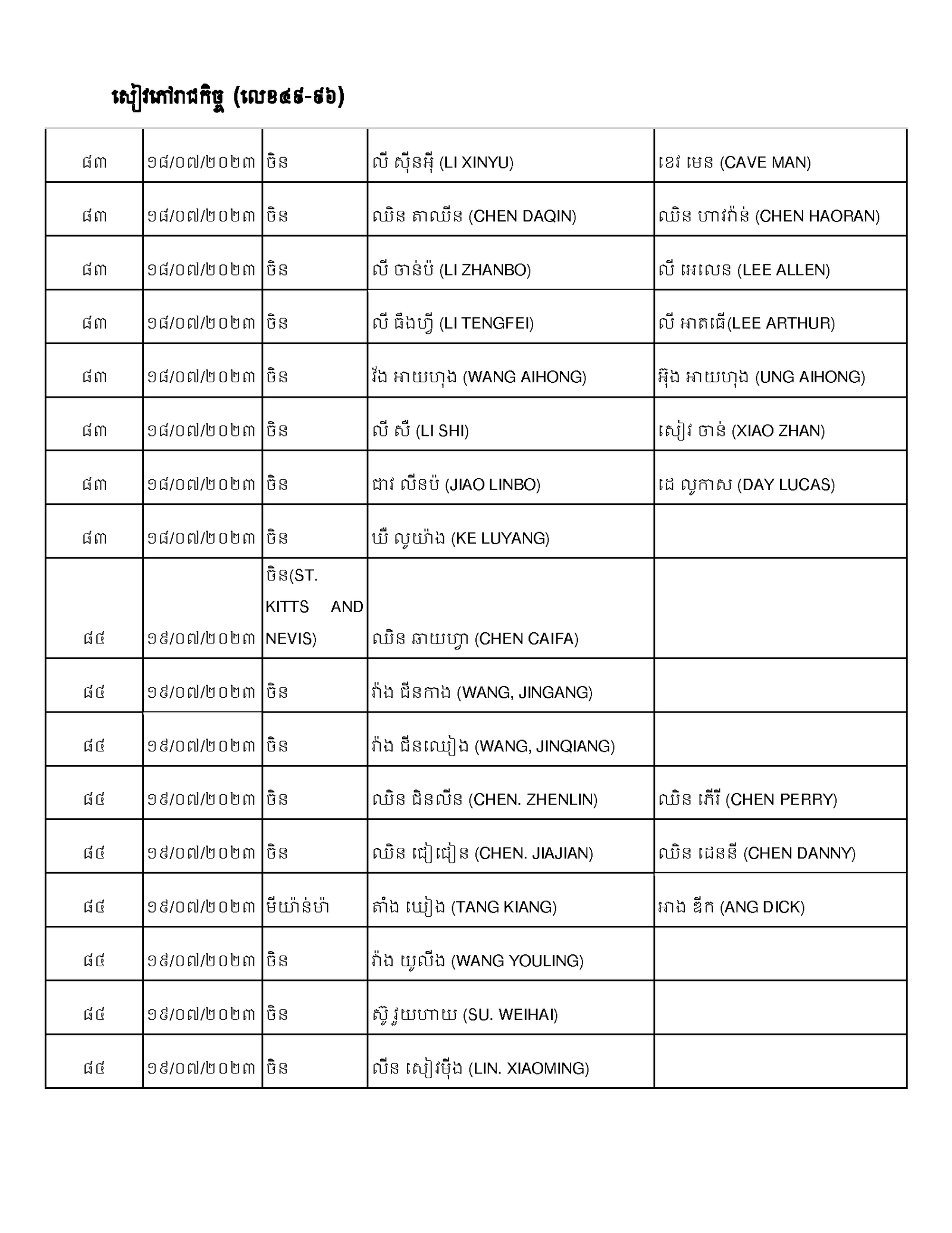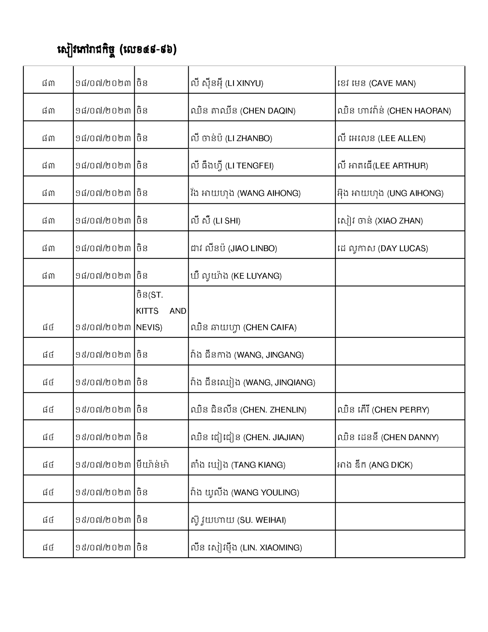 ជនបទេសចំនួន ៤៤៨នាក់ ដែលមានសញ្ជាតិដើម២៥ផ្សេងគ្នា ទទួលបានសញ្ជាតិខ្មែរក្នុងឆមាសទី២ នៃឆ្នាំ២០២៣ នេះបើយោងតាមសៀវភៅរាជកិច្ច។