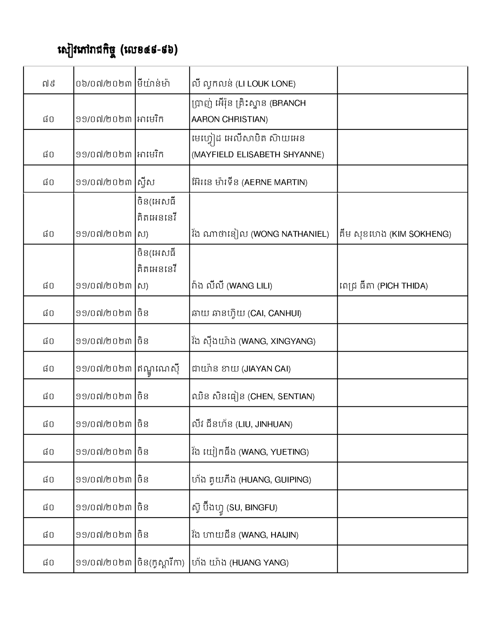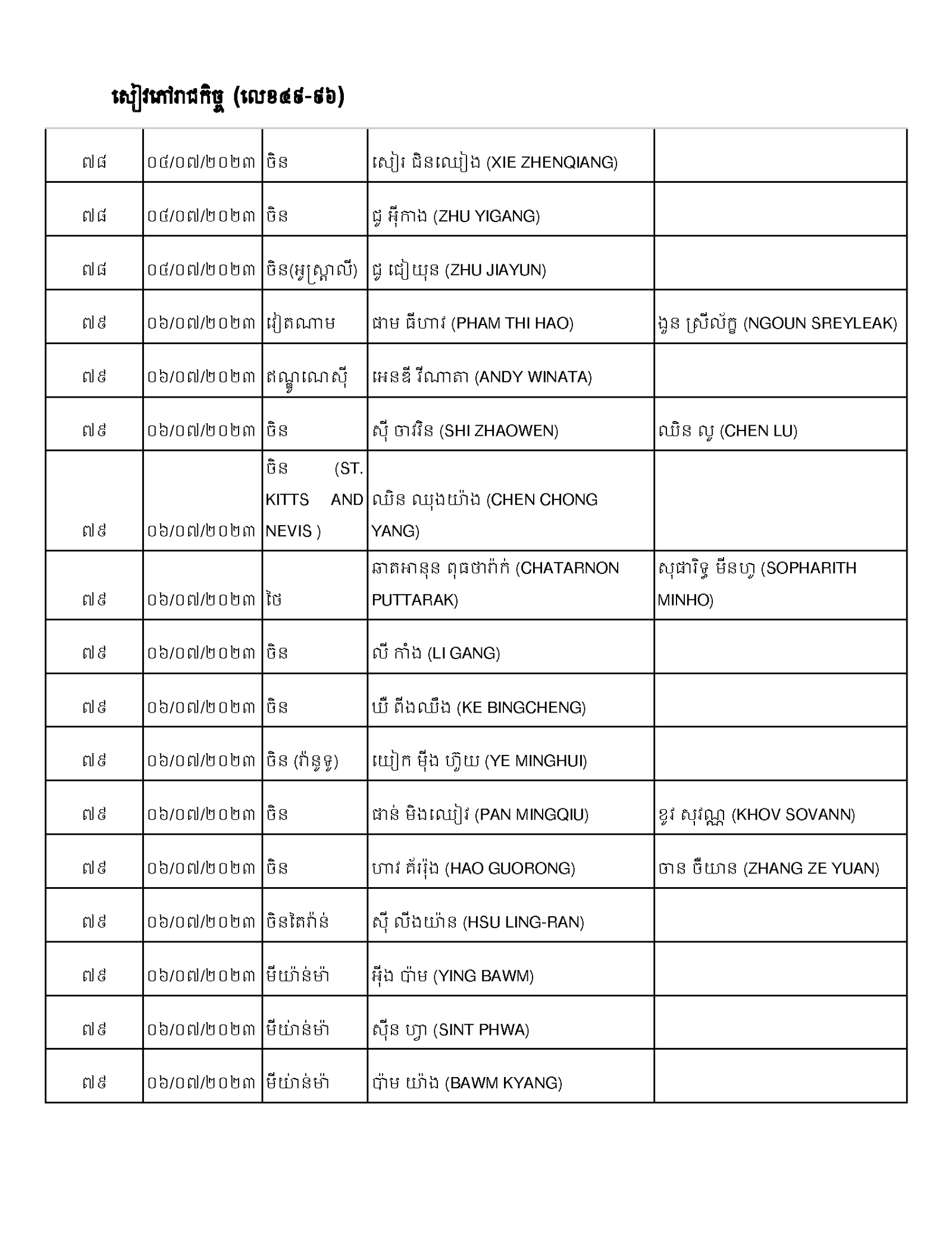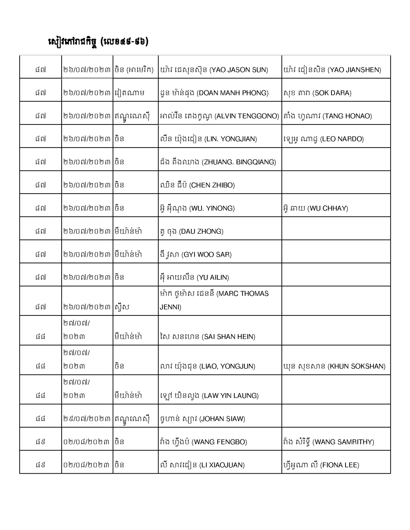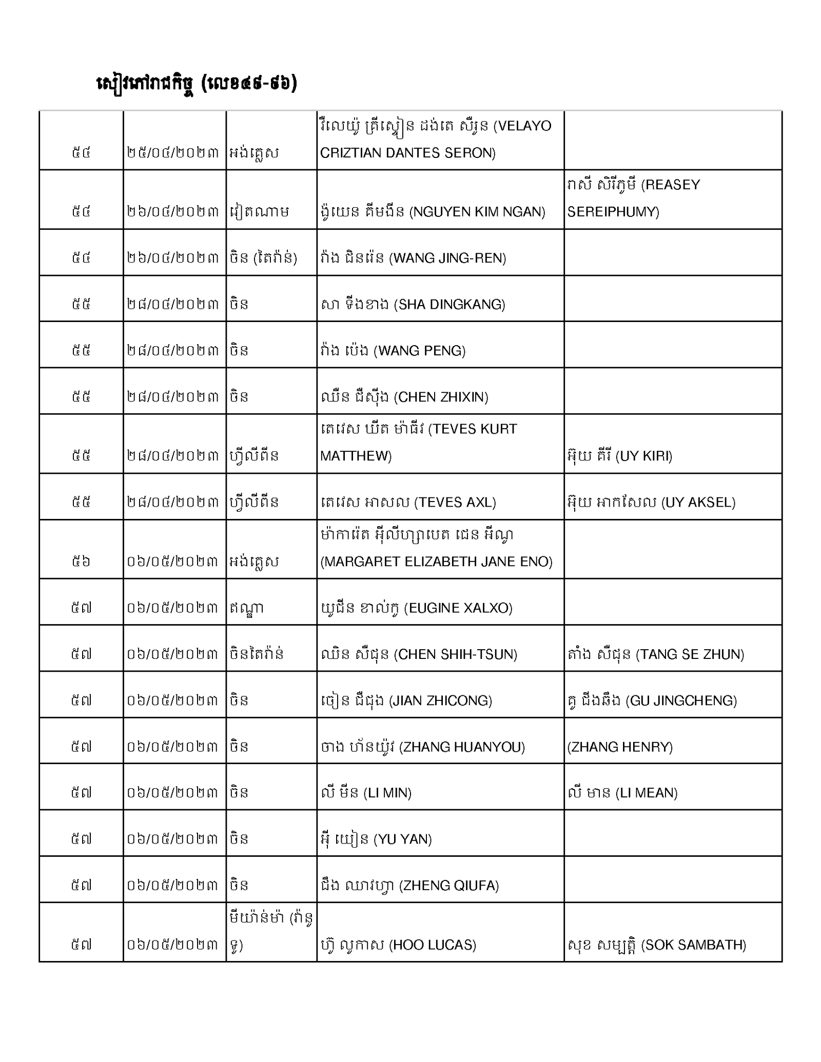 ជនបទេសចំនួន ៤៤៨នាក់ ដែលមានសញ្ជាតិដើម២៥ផ្សេងគ្នា ទទួលបានសញ្ជាតិខ្មែរក្នុងឆមាសទី២ នៃឆ្នាំ២០២៣ នេះបើយោងតាមសៀវភៅរាជកិច្ច។
