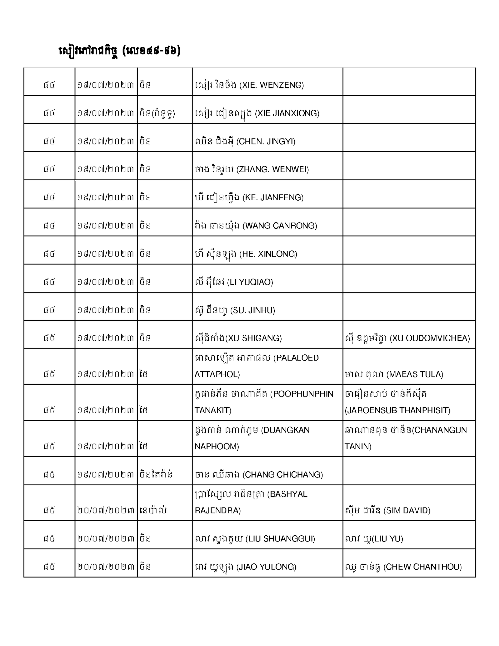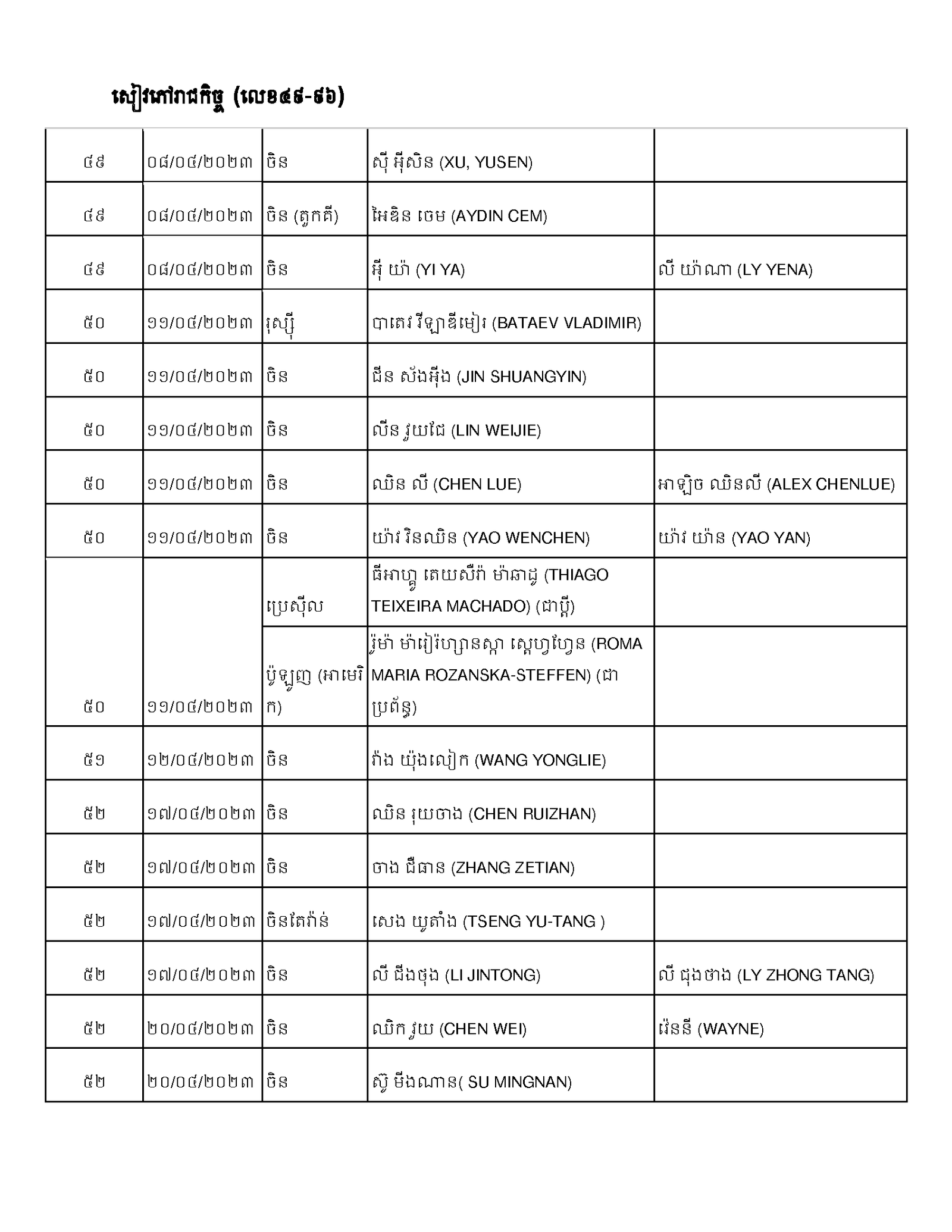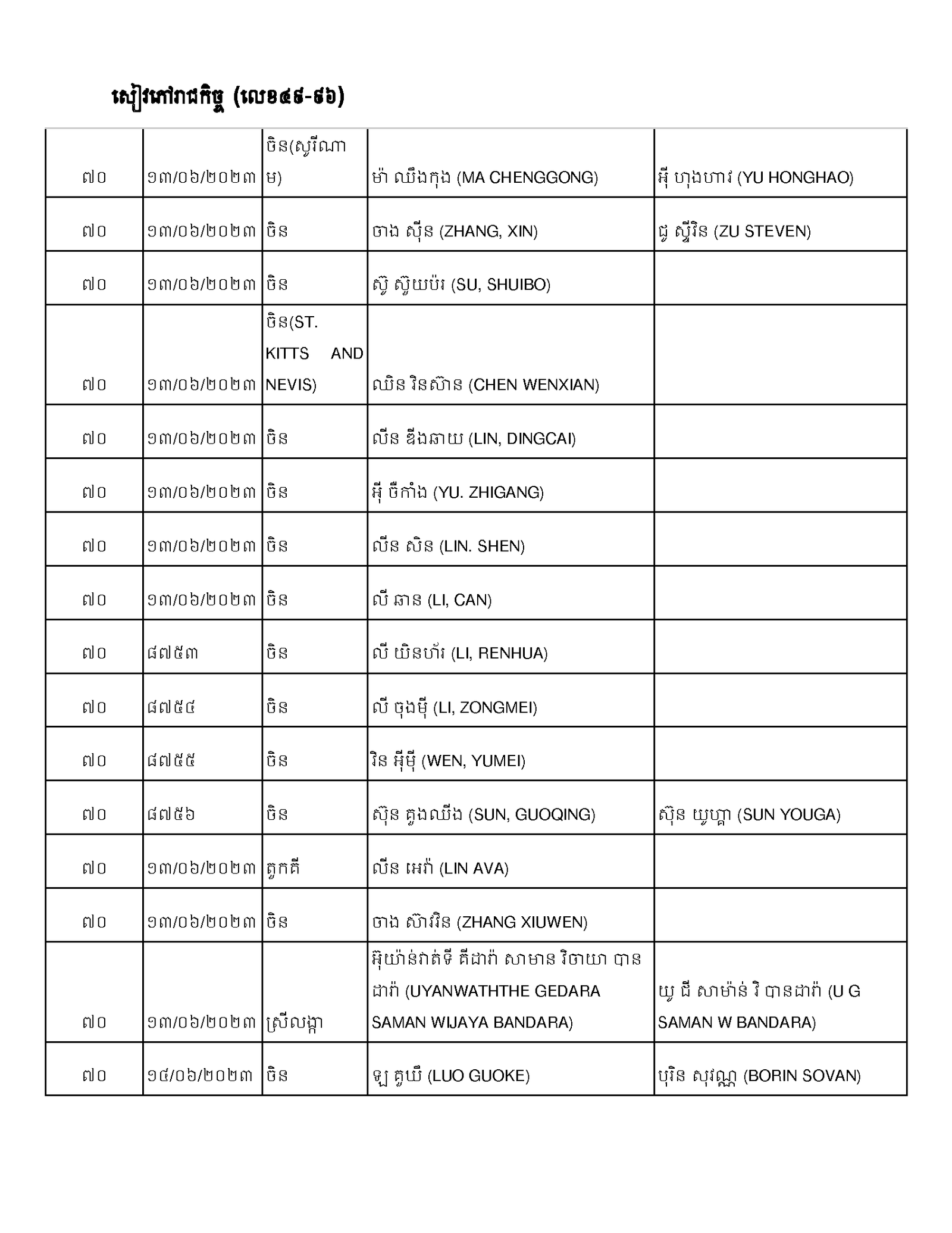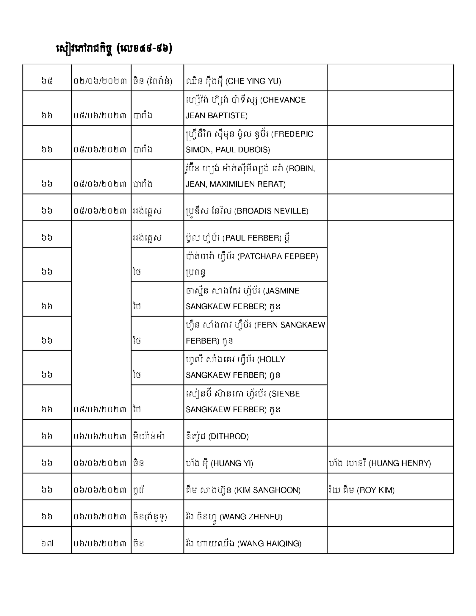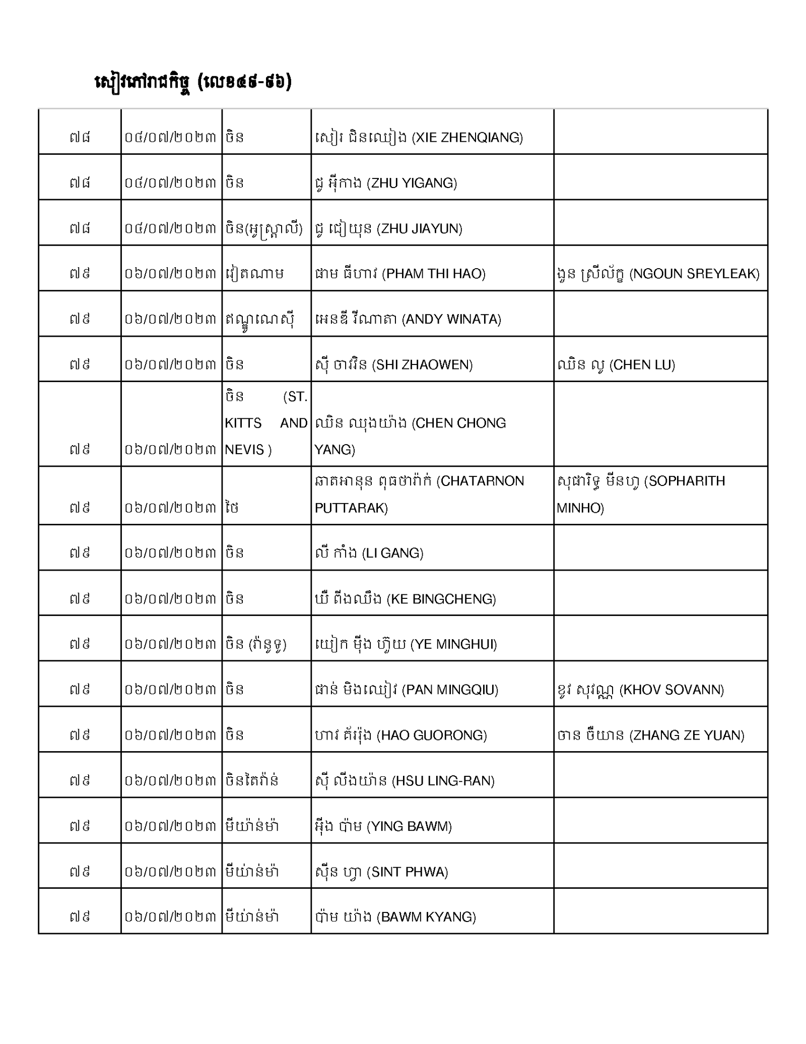 ជនបទេសចំនួន ៤៤៨នាក់ ដែលមានសញ្ជាតិដើម២៥ផ្សេងគ្នា ទទួលបានសញ្ជាតិខ្មែរក្នុងឆមាសទី២ នៃឆ្នាំ២០២៣ នេះបើយោងតាមសៀវភៅរាជកិច្ច។