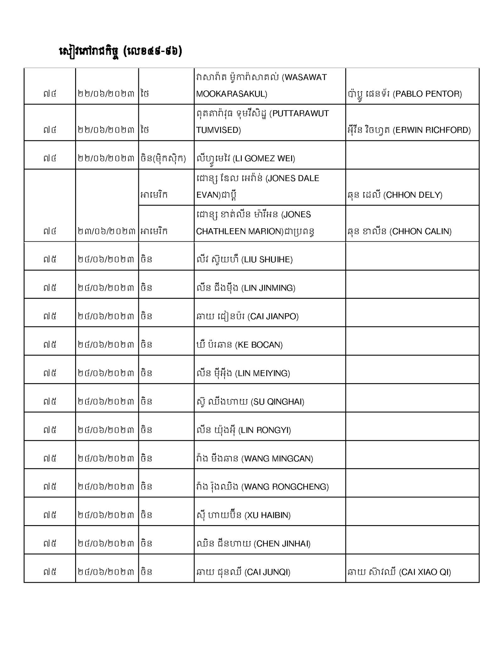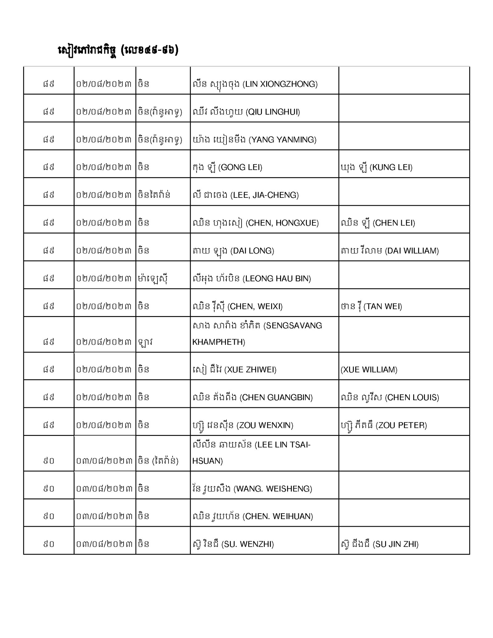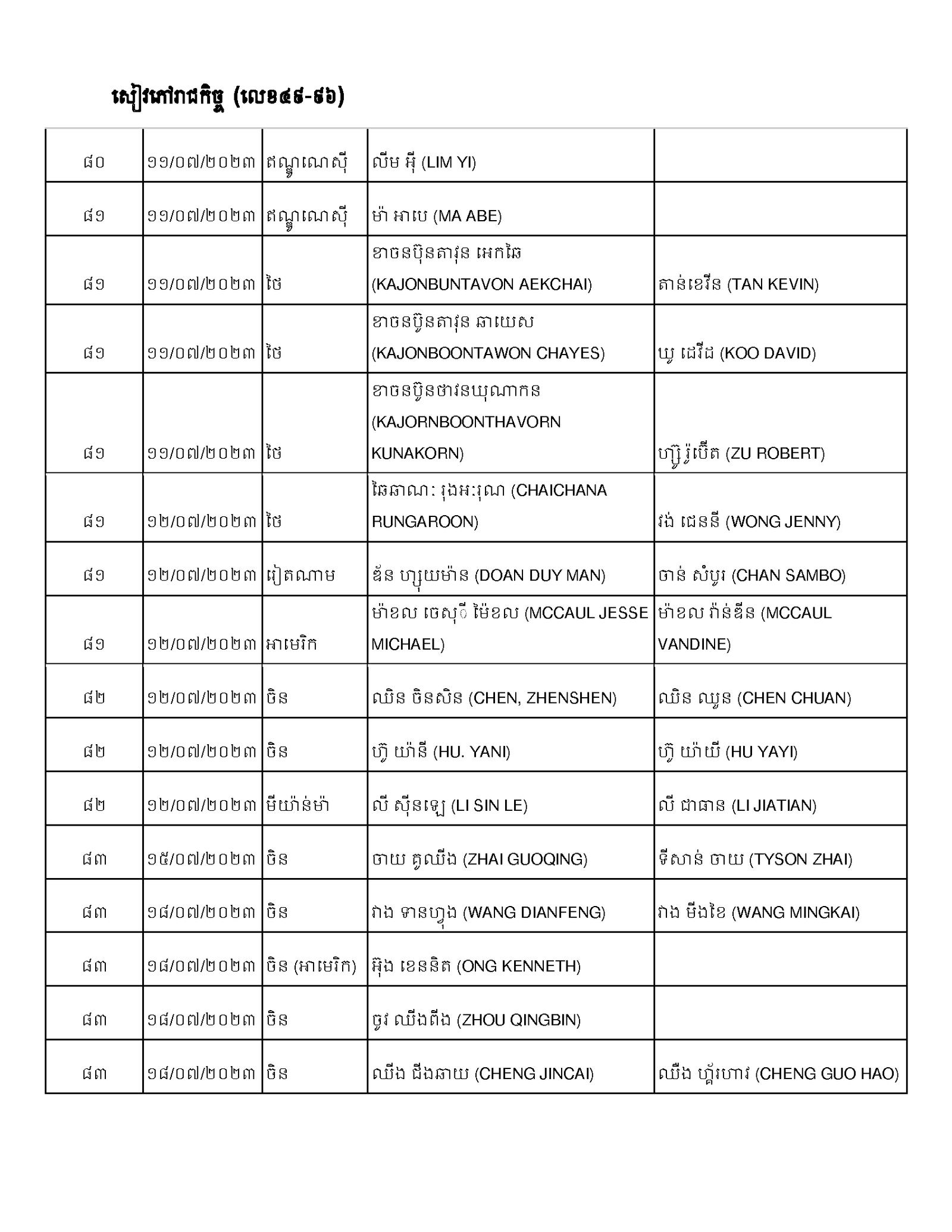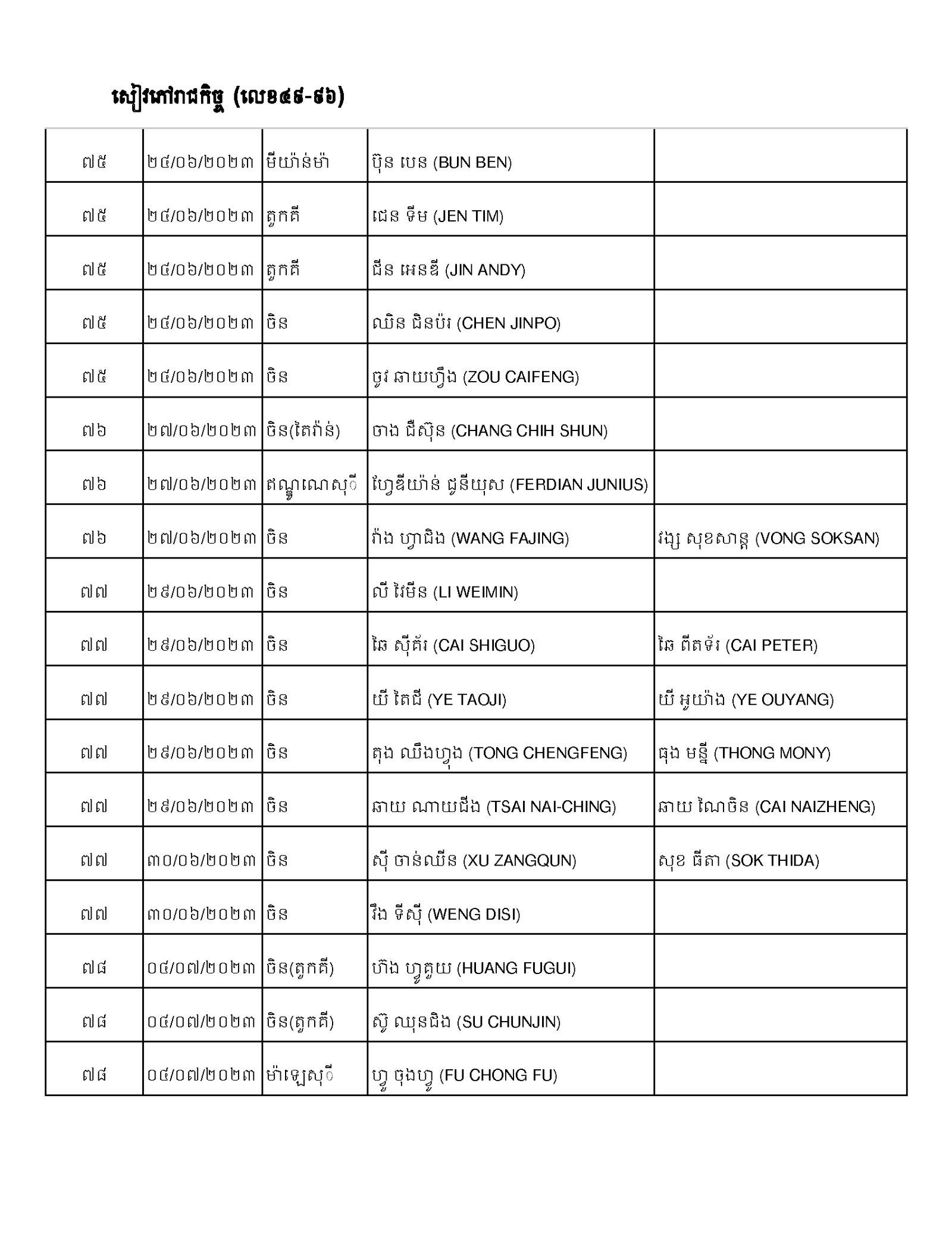 ជនបទេសចំនួន ៤៤៨នាក់ ដែលមានសញ្ជាតិដើម២៥ផ្សេងគ្នា ទទួលបានសញ្ជាតិខ្មែរក្នុងឆមាសទី២ នៃឆ្នាំ២០២៣ នេះបើយោងតាមសៀវភៅរាជកិច្ច។
