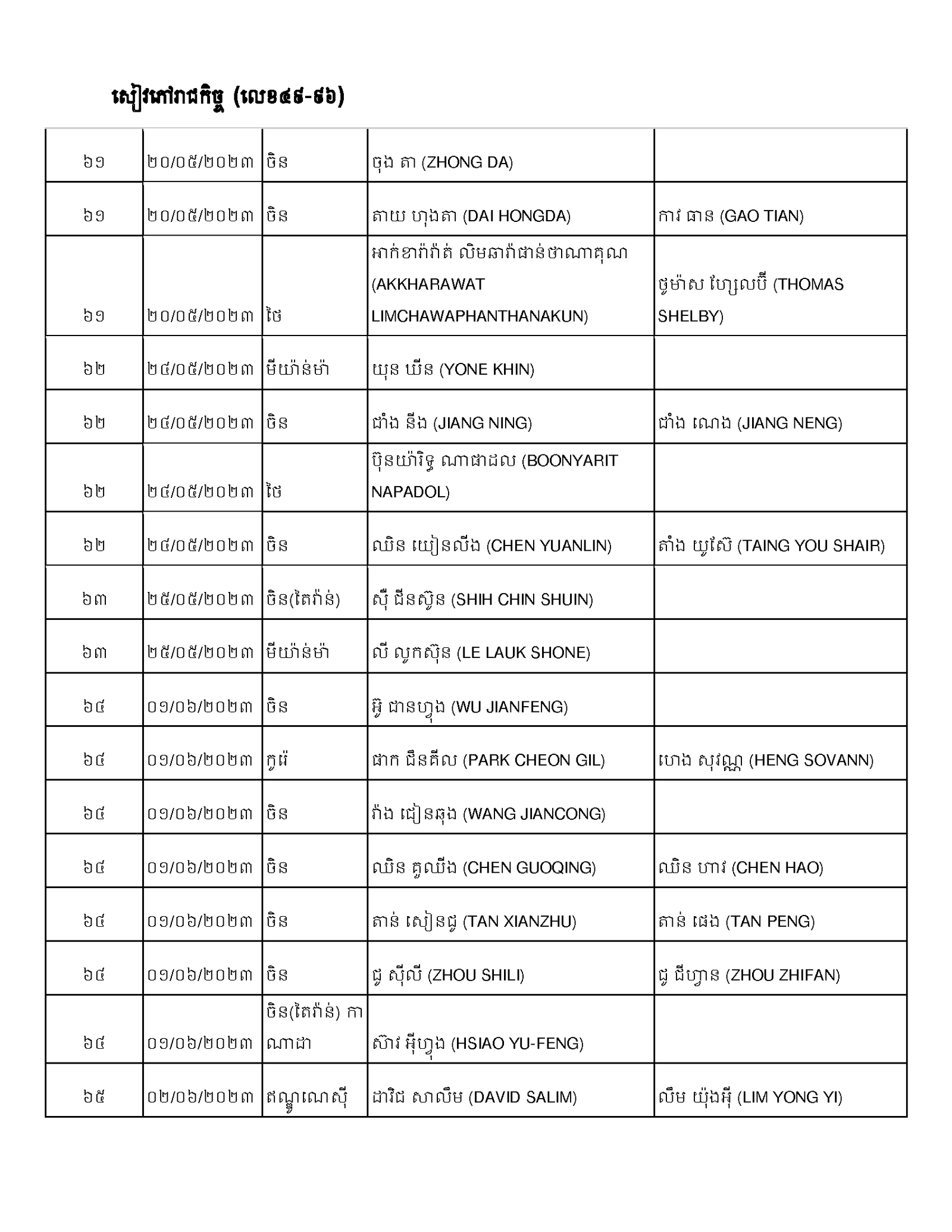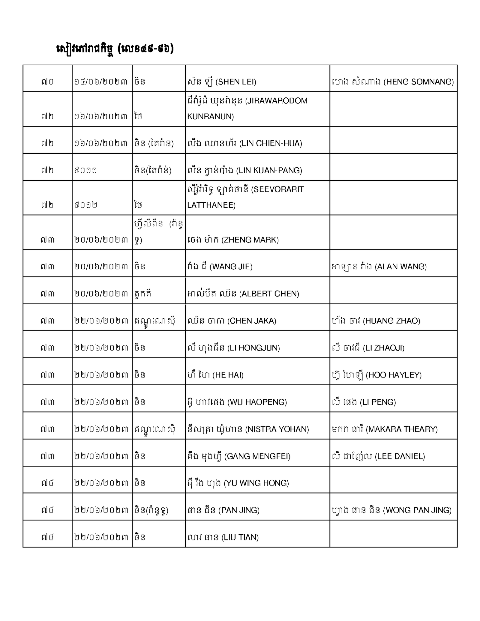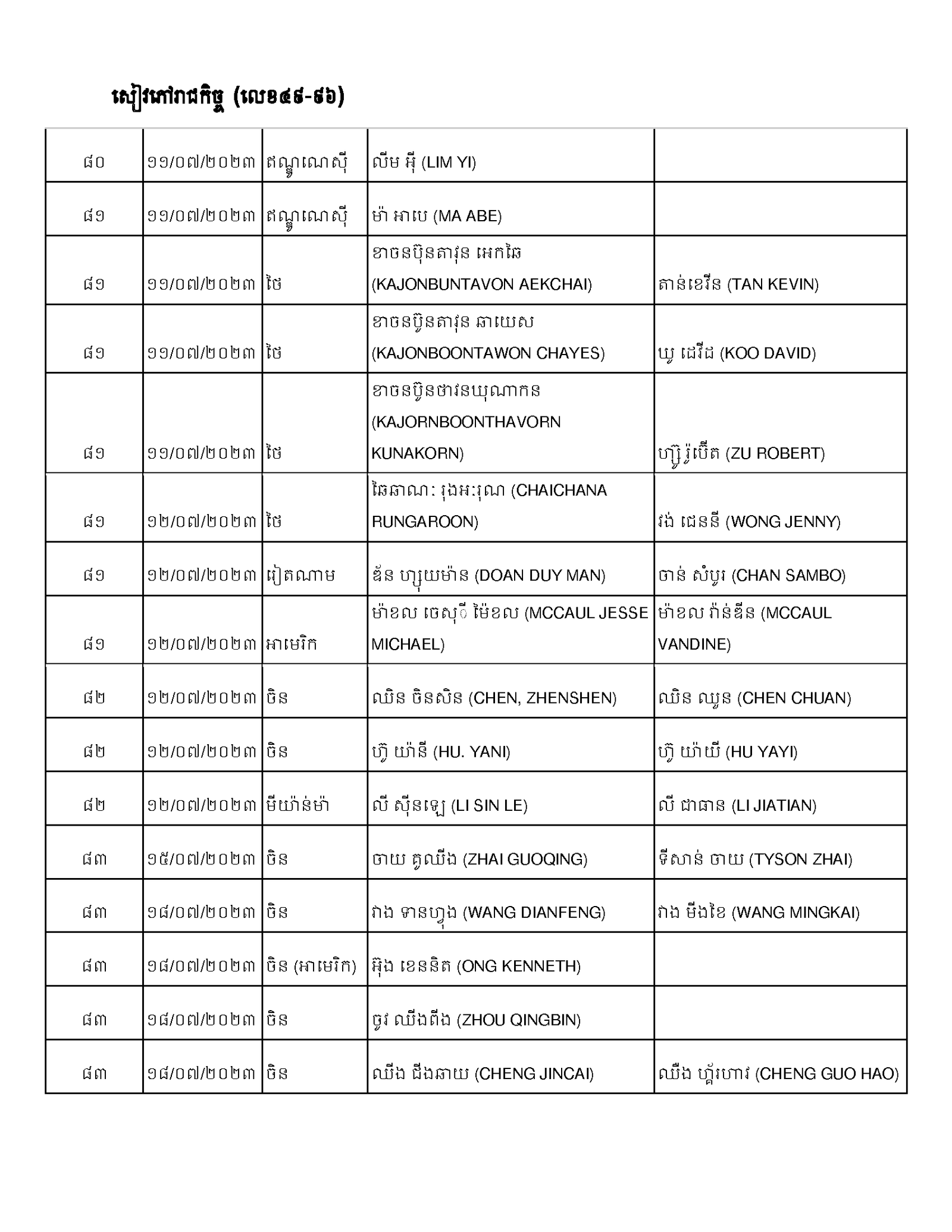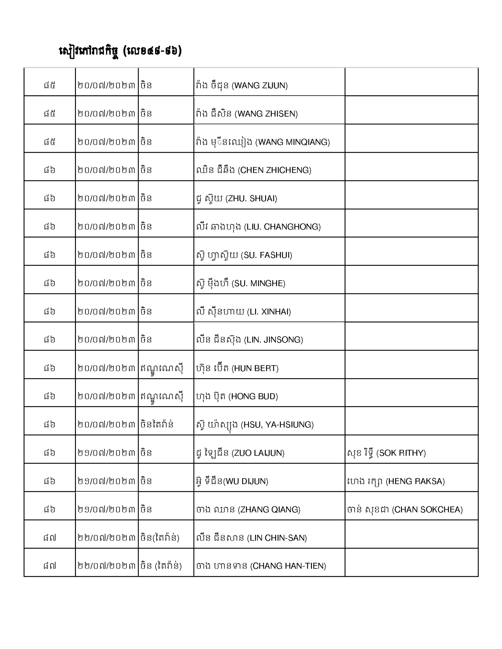 ជនបទេសចំនួន ៤៤៨នាក់ ដែលមានសញ្ជាតិដើម២៥ផ្សេងគ្នា ទទួលបានសញ្ជាតិខ្មែរក្នុងឆមាសទី២ នៃឆ្នាំ២០២៣ នេះបើយោងតាមសៀវភៅរាជកិច្ច។