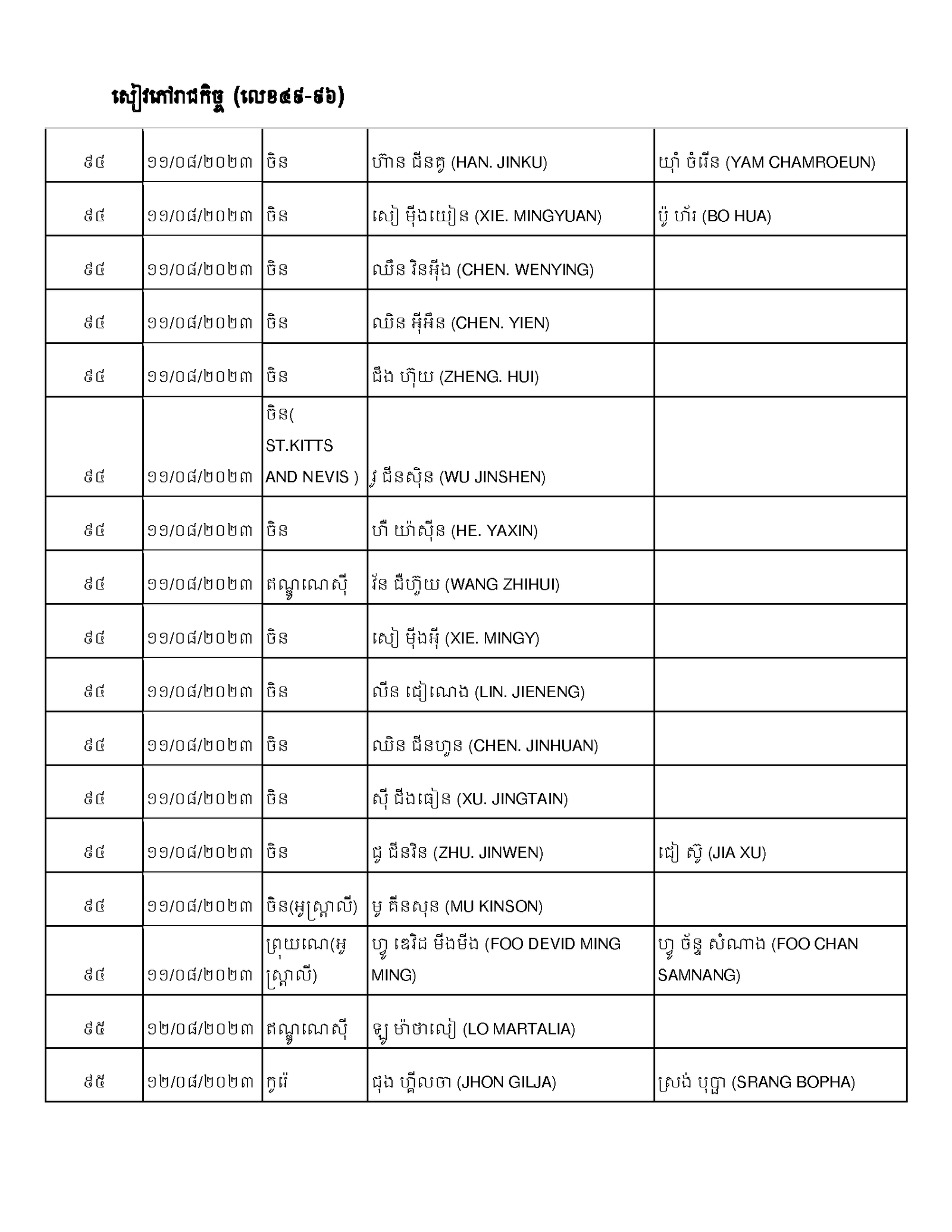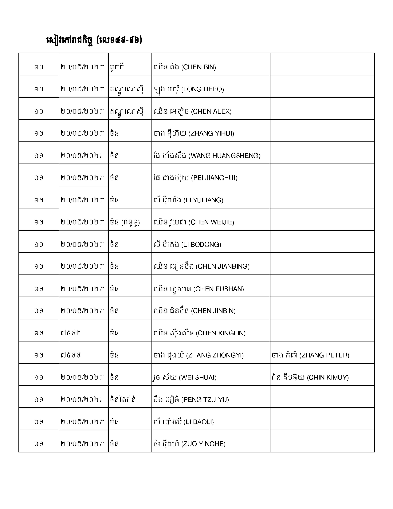 ឯកសារដដែល ក៏បានបង្ហាញផងដែរថា មានជនជាតិខ្មែរ៥នាក់ បានបោះបង់សញ្ជាតិ ក្នុងនោះមាន៣រូប កំពុងរស់នៅតៃវ៉ាន់ និង២រូបកំពុងរស់នៅអាល្លឺម៉ង់។ ចំណែកជនជាតិចិនពីរនាក់ ក៏បានបោះបង់សញ្ជាតិខ្មែរផងដែរ ដែលបច្ចុប្បន្នកំពុងរស់នៅសាធារណៈរដ្ឋប្រជាមាននិតចិន។