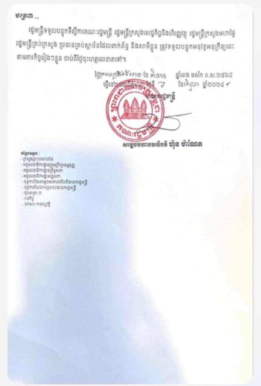 លោកនាយករដ្ឋមន្ត្រី ហ៊ុន ម៉ាណែត សម្រេចដកហូតមុខតំណែងនាយនគរបាលថ្នាក់ឧត្តមសេនីយ៍ត្រីមួយរូប ពីអគ្គនាយករង នៃអគ្គនាយកដ្ឋានសវនកម្មផ្ទៃក្នុង ក្របខ័ណ្ឌមន្ត្រីនគរបាលជាតិ ឱ្យមកជាមន្ត្រី បន្ទាប់ពីរងការចោទប្រកាន់ថា បានទារប្រាក់មួយលានរៀលពីឃុំចំនួន១០នៅស្រុកសាមគ្គីមុនីជ័យ នៃខេត្តកំពង់ស្ពឺ។